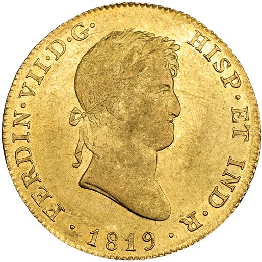 8 escudos. 1819. Madrid. GJ. VI-1477. B.O. EBC-/EBC. Muy rara.