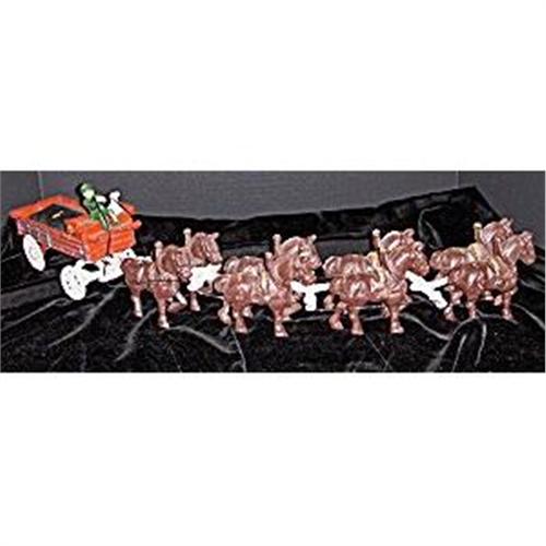 This is a reproduction 8 horse team and farm wagon with driver, dog and two children in the back. It is an art form from yesteryear and would be delightful in a childs' room...
