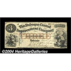$8 in Iowa ObsoletesCouncil Bluffs, IA - Banking House of Baldwin & Dodge $2 remainder Oakes 26-2 AUDubuque, IA - Dubuque Central Improvement Company $3 Dec. 11, 1857 Oakes 48-2 (2) EF 3 notes <BR><BR><B>Important notice:</B> Heritage usually auctions material at the rate of 200-250 lots per hour. On some occasions eBay Live bid software or the Internet may not be able to keep up with the pace of the auction. We recommend placing a realistic absentee bid now as insurance to avoid disappointment. Occasionally the auctioneer may eliminate or reject an eBay Live bid, and the auctioneer may also reopen a lot after the close of the eBay live bidding (usually because we missed an audience bid), and may reject your bid even if it shows you as the winning bidder. By bidding via eBay Live, you agree that Heritage may award the lot to another bidder at its sole discretion under the circumstances described above or any other reasonable circumstances. Since eBay bids are not shown to us until we open the lot on the floor, we treat those bids just like floor bids. In most cases the floor responds before the eBay bid is presented to us, due to Internet lag time, so for consistency we have made it a policy that floor bids are always considered first over tie eBay live bids. Also please note that all Heritage lots purchased through eBay Live carry a 20% Buyer's Premium. Please make sure you read the Terms and Conditions before you bid. <BR><BR><B>IMPORTANT ANNOUNCEMENT ABOUT RESERVES:</B> Heritage now divulges all reserves on its web site 7 days before every auction. If you want to know whether the reserve on this lot has been met, and if not, what the reserve amount is, please visit this lot page on the HeritageCoin.com web site, or email: bid@HeritageGalleries.com