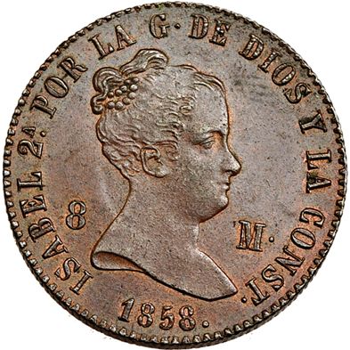 8 maravedís. 1858. Barcelona. VI-64. R.B.O. EBC.