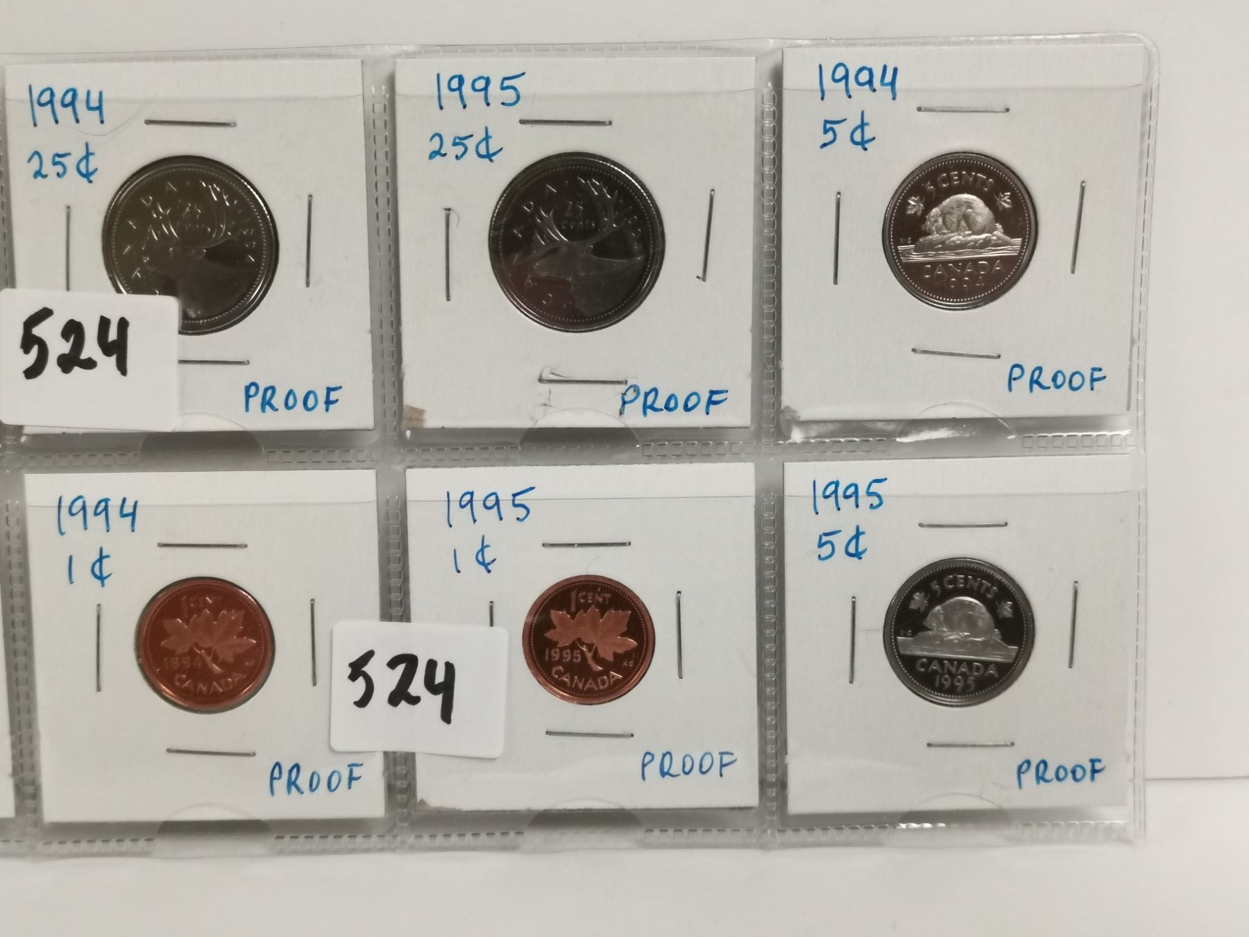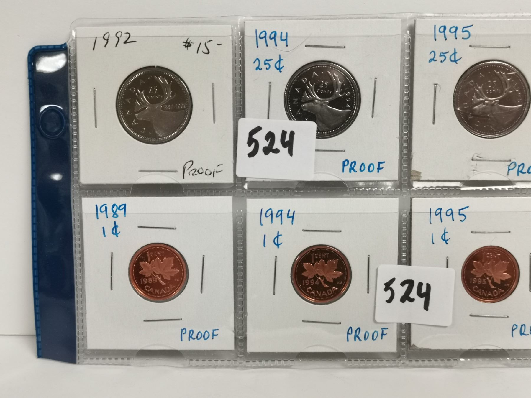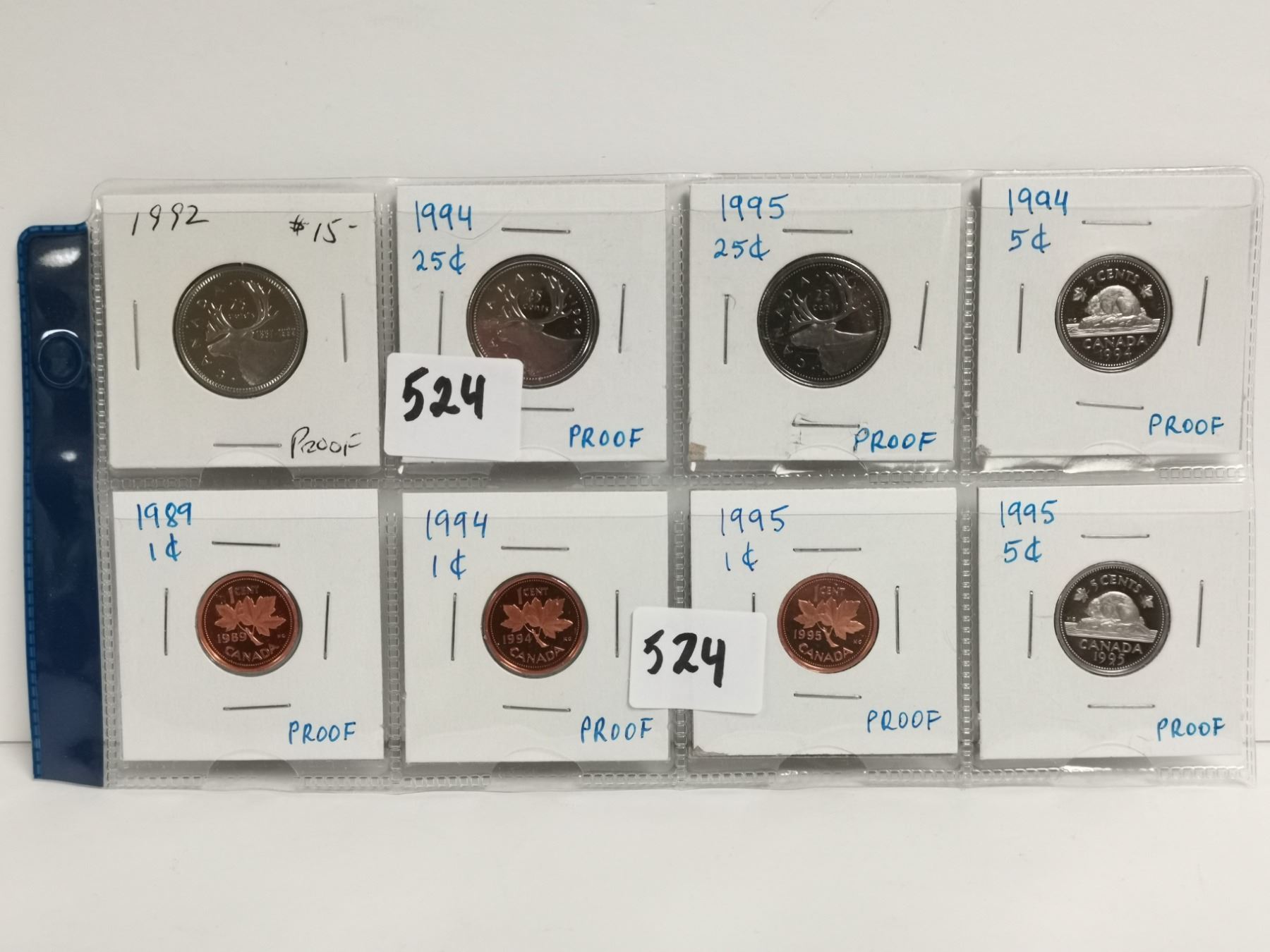 8 proof UNC Canadian coins - 1 cent, 5 cent, 25 cent - 1992