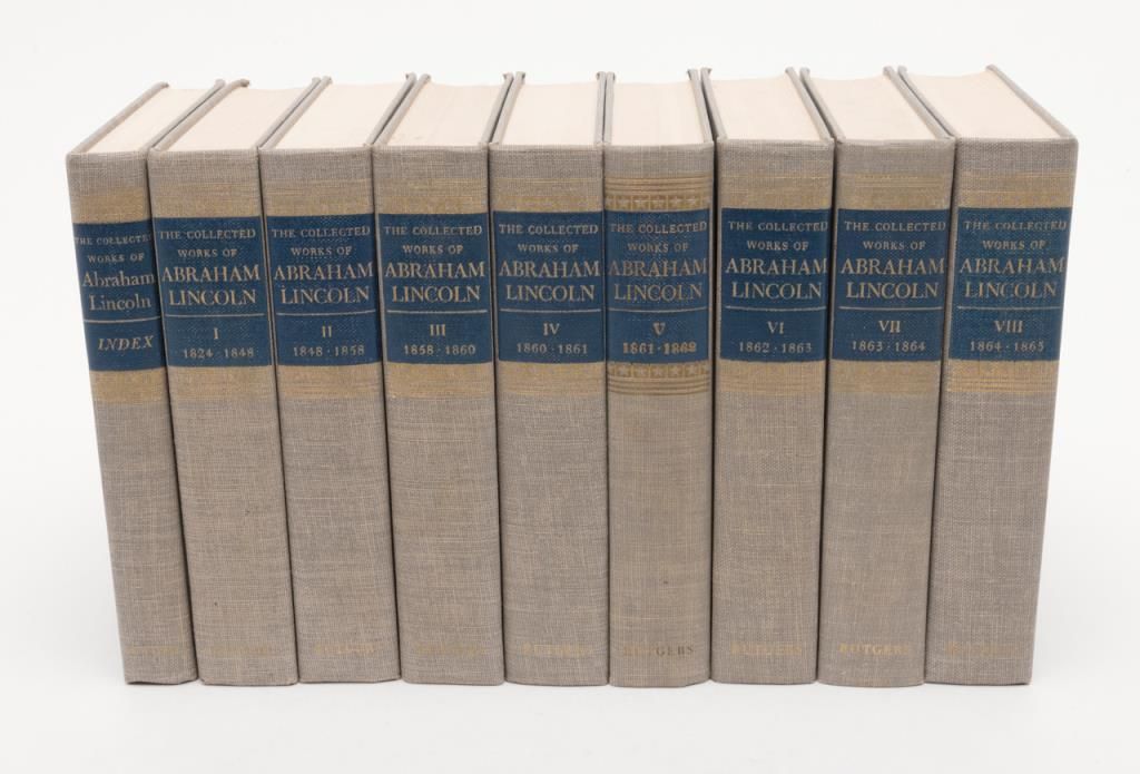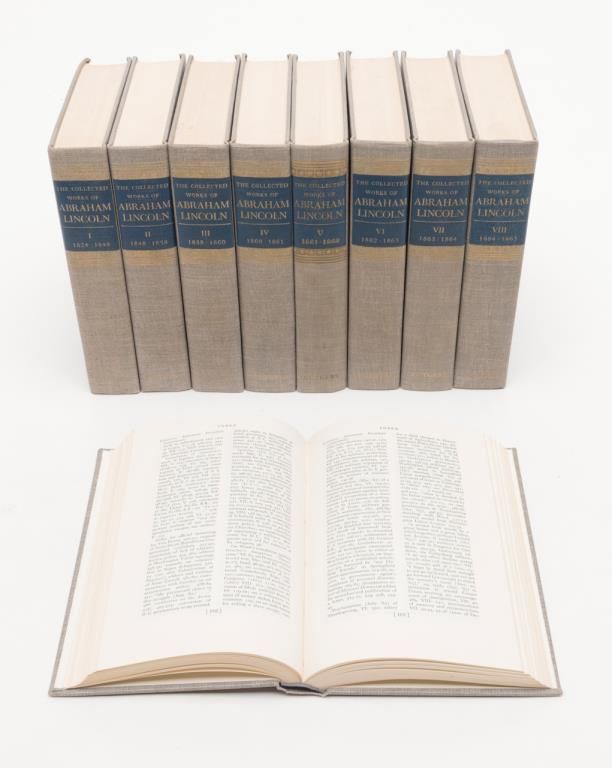 8 volume set containing “The Works of Abraham Lincoln” by Roy P. Baslar with index copyrighted 1953 and was a historic book club edition printed by Rutgers University Press New Jersey. The set is in very good plus condition with some staining to the binding and normal aging. Est.: $75-$150