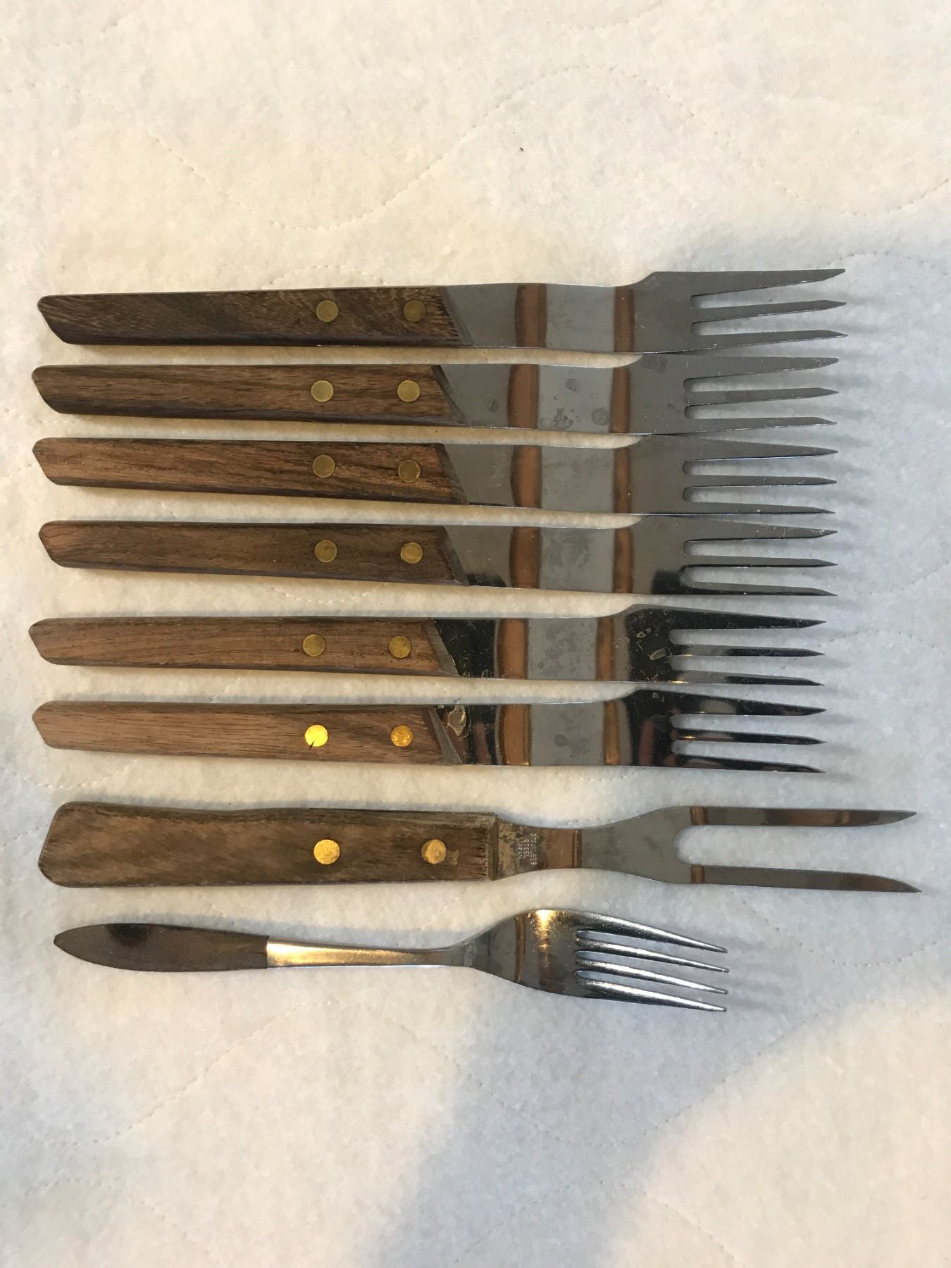 8 wooden handle forks