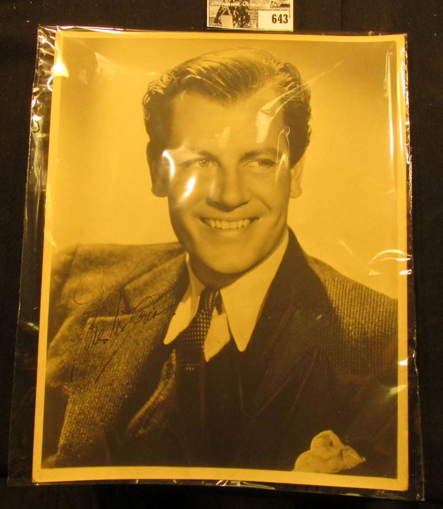 8" x 10" Autographed Photograph JOEL McCREA. "Joel McCrea". B/W. Joel McCrea (1905-1990), who was a movie stunt double while still in high school and appearing at the Pasadena Playhouse while at USC, made his film debut in 1927 and had his breakthrough role, in Jazz Age, two years later. In 1946, after making The Virginian, McCrea concentrated on Westerns. In addition to his long list of film credits, McCrea starred on the early 1950s radio show, Tales of the Texas Rangers, and the 1959 TV series, Wichita Town. Fine condition.