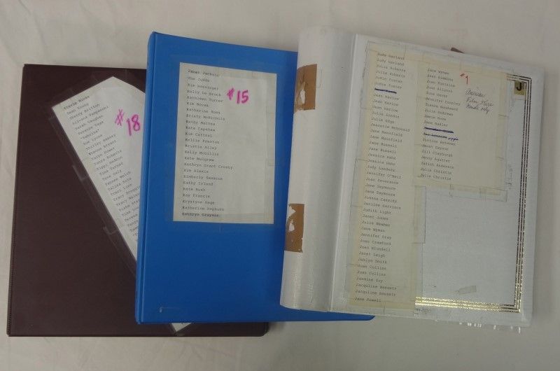 EST $140- $160, NOT AUTOGRAPHED, MANY BIG NAMES like JUDY GARLAND, JULIA ROBERTS, JOAN CRAWFORD, KIM BASSINGER, KATHERINE HEPBURN, STEVIE NICKS, JANET JACKSON AND MANY OTHER GREAT FILM STARS / CELEBRITIES. MOSTLY ALL DIFFERENT, STORED IN ALBUMS