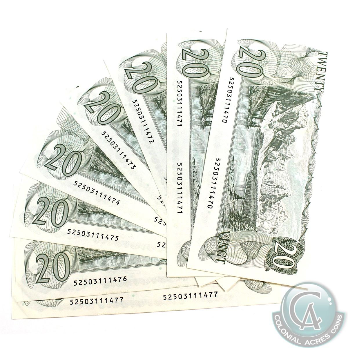 8 x 1979 $20.00 Notes with Thiessen-Crow Signatures and Consecutive Serial Numbers all in UNC Condition. 8 pcs.