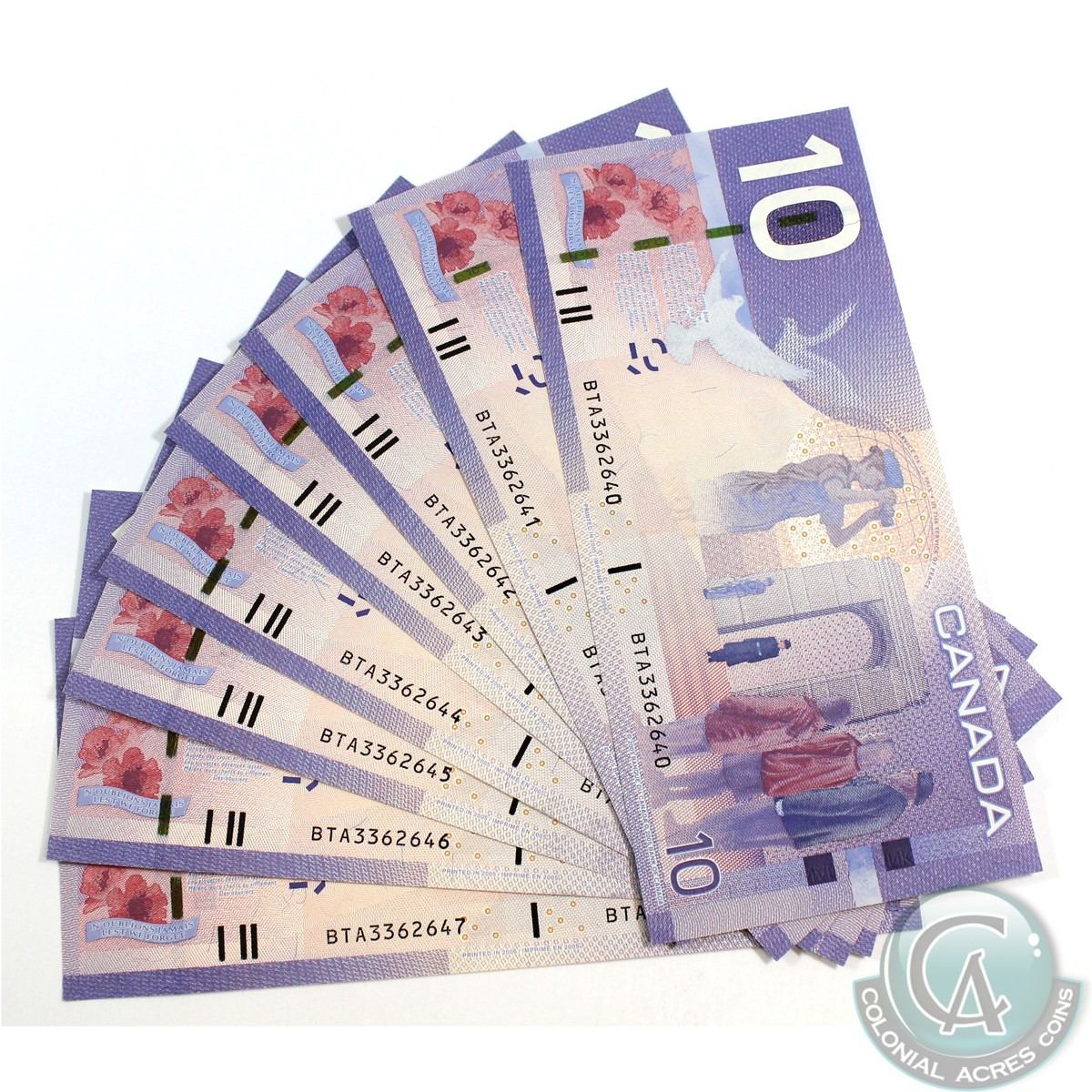 8 x 2005 $10.00 Notes with BTA Prefix, Jenkins-Dodge Signatures and Consecutive Serial Numbers all in UNC Condition. 8 pcs.