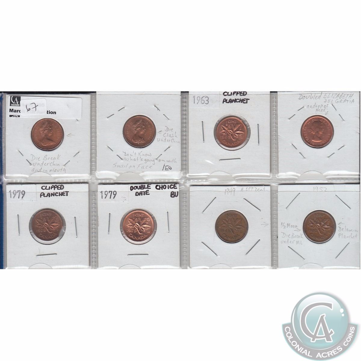 8 x Errors and Varieties on Canada 1-cents. As indicated on holders, please view picture. 8pcs