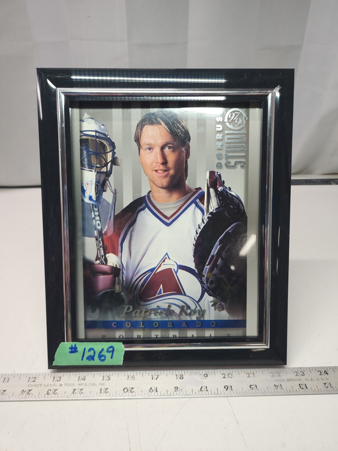 8"x10" Framed picture of Patrick Roy - nice shape, has info behind picture