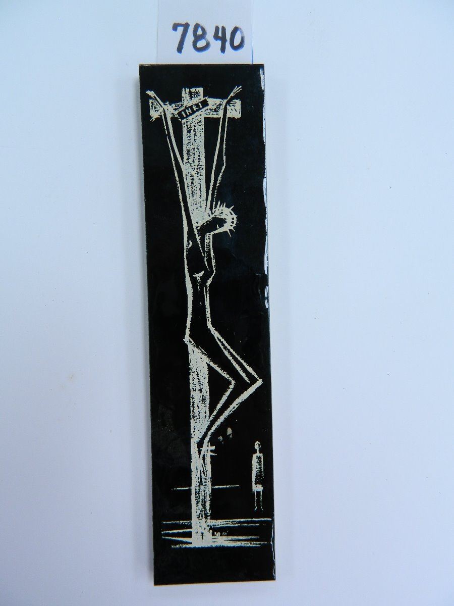 8"x2" V&B Mettlach Germany (SAAR), Jesus on Cross Tile, Very Fine!
