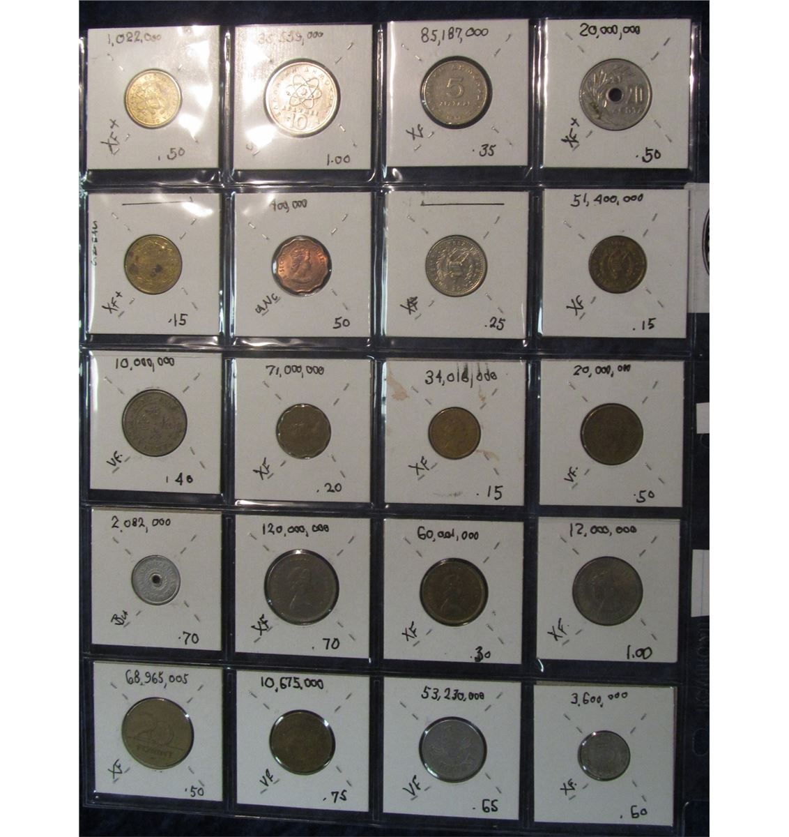80. (20) World Coins in a Plastic Page identified with KM No., Metal size, & etc. All different. Inc