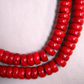 LOT OF 15 RED SEA BAMBOO CORAL DISK BEADS WEIGHING 80 CTS AND MEASURING 12X5 MM