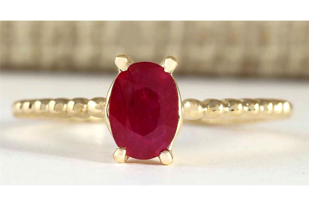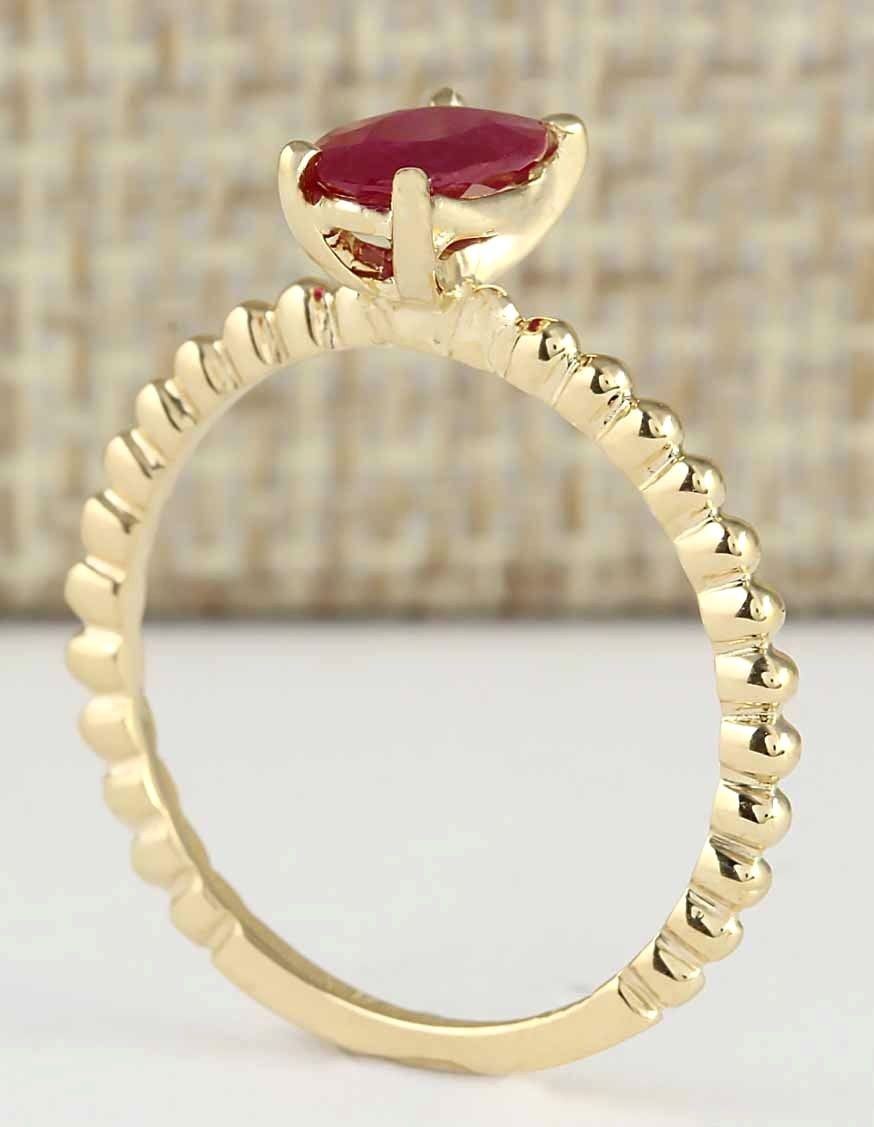 Stamped: 14K Ring Size: 6.75 Total Ring Weight: 2 Grams Gemstone Weight: Total Natural Ruby Weight is .80ctw Main Stone Color: Red Face Measures: 7.78x5.00mm SKU: [703410]