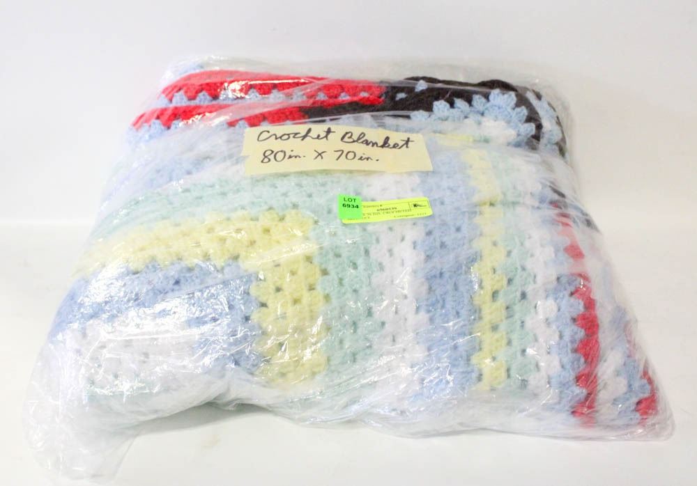 80 INS.X 70 INS. CROCHETED BLANKET.