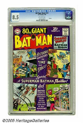 <B>80 Page Giant #12 (DC, 1965) CGC VF+ 8.5 Off-white pages.</B></I> Featuring Batman. Sheldon Moldoff, Lew Schwartz, Jack Burnley, and Dick Sprang art. Overstreet 2005 VF 8.0 value = $119; VF/NM 9.0 value = $182. CGC census 3/05: 6 in 8.5, 13 higher.