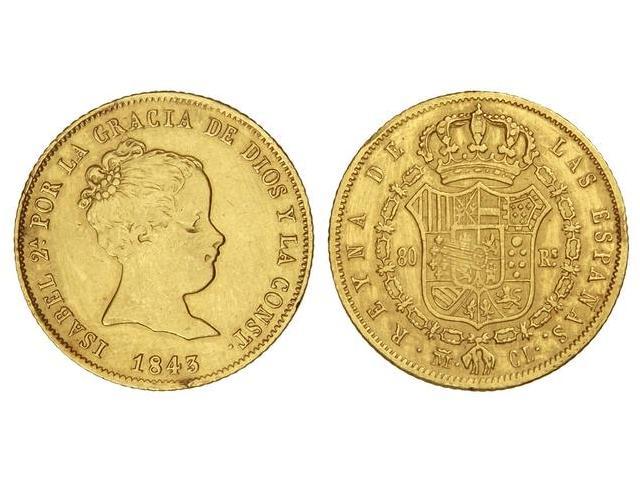 80 Reales. - 1843. - MADRID. - C.L. - (Limpiada). Cal-76. MBC-. - -