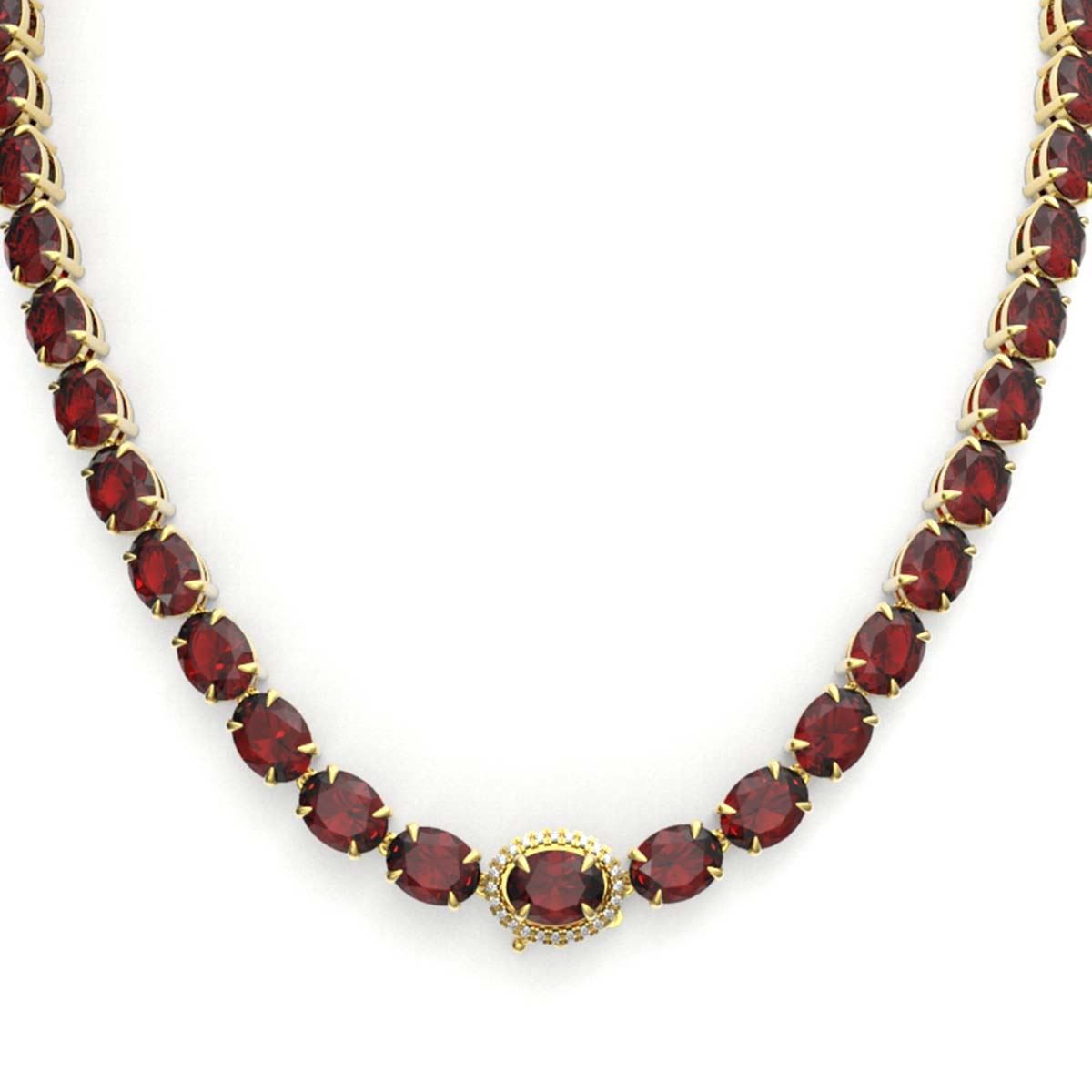 REF-236M4F - SKU:23464 ---- 80 ctw Garnet & VS/SI Diamond Eternity Necklace 14K Yellow Gold
