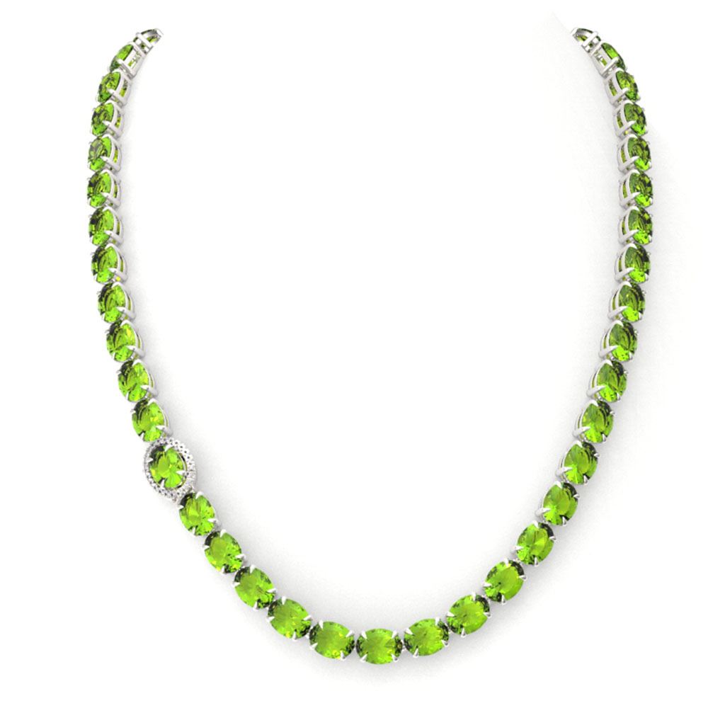 REF-418N2F - SKU: 23470 ---- 80 ctw Peridot & VS/SI Diamond Micro Pave Necklace 14k White Gold