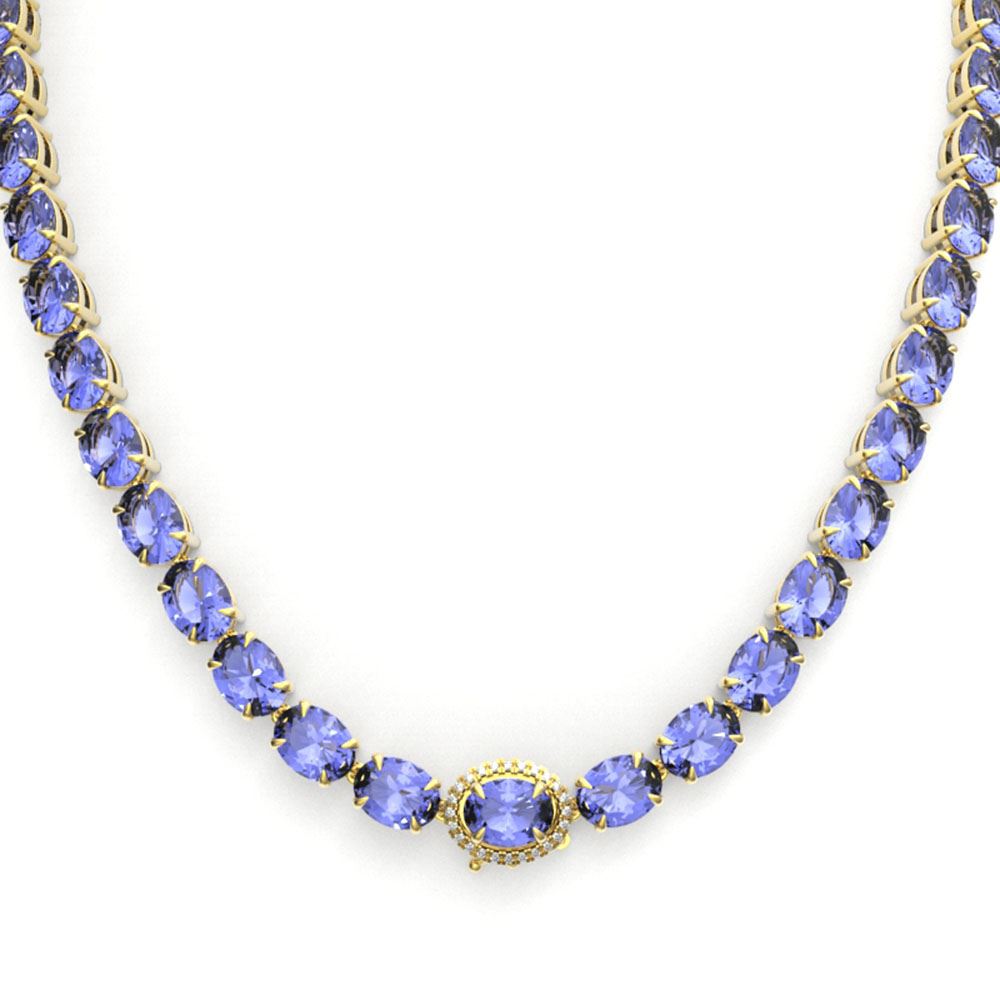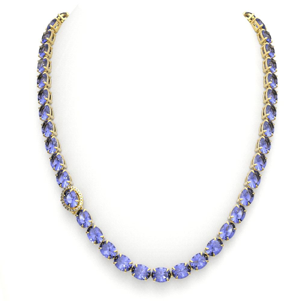 REF-890F9M - SKU: 23479 ---- 80 ctw Tanzanite & VS/SI Diamond Micro Necklace 14k Yellow Gold