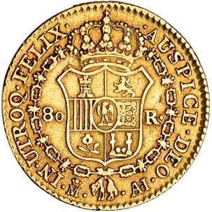 80 reales. 1811. Madrid. AI. VI-40. Ligeramente abrillantada. Pequeñas marcas. MBC-/MBC.
