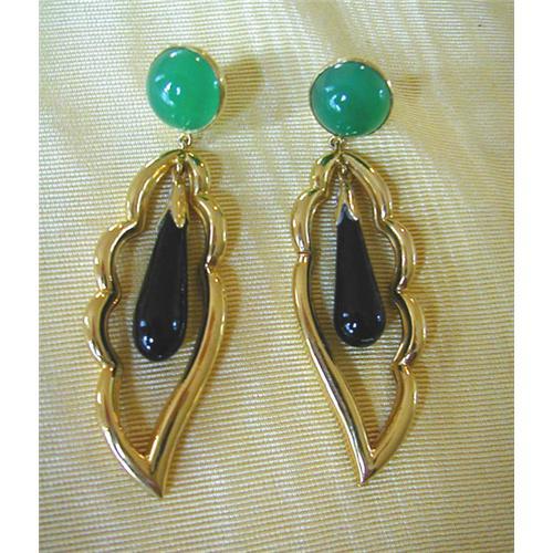 <tr><td>Title: 80's~14K,GREEN & BLK.ONYX ~2 5/8"Long Earrings</td></tr>