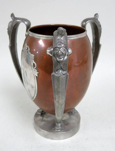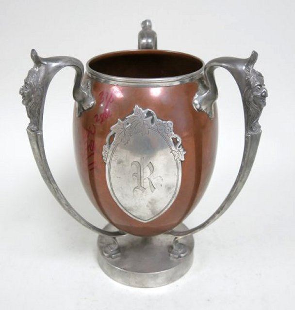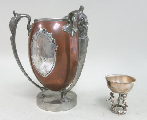 Mixed metal loving cup, approx. 10 1/4" H. Silver cup approx. 3 1/2"H, approx. 3.47ozt. From a NYC collector's 40 year compilation.
