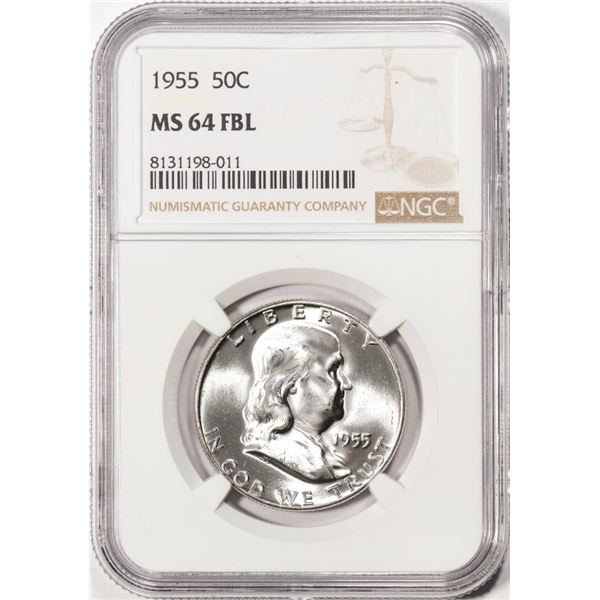 One 1955 Franklin Half Dollar Coin NGC MS64FBL. NGC Certified.