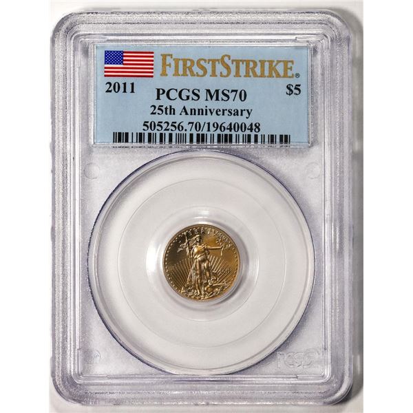 2011 $5 American Gold Eagle Coin PCGS MS70 First Strike 25th Anniversary