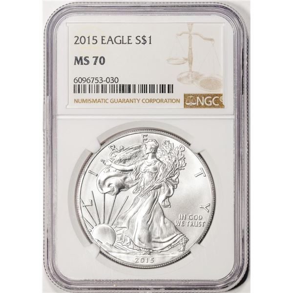 One 2015 $1 American Silver Eagle Coin NGC MS70. NGC Certified.