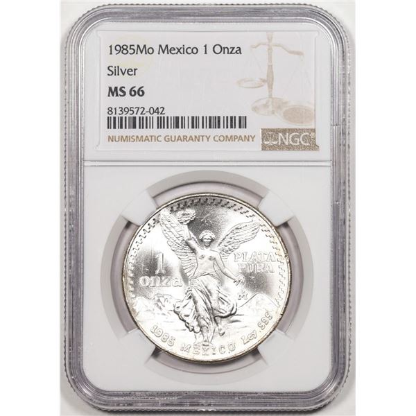 One 1985Mo Mexico 1 Onza Libertad Silver Coin NGC MS66. NGC Certified.