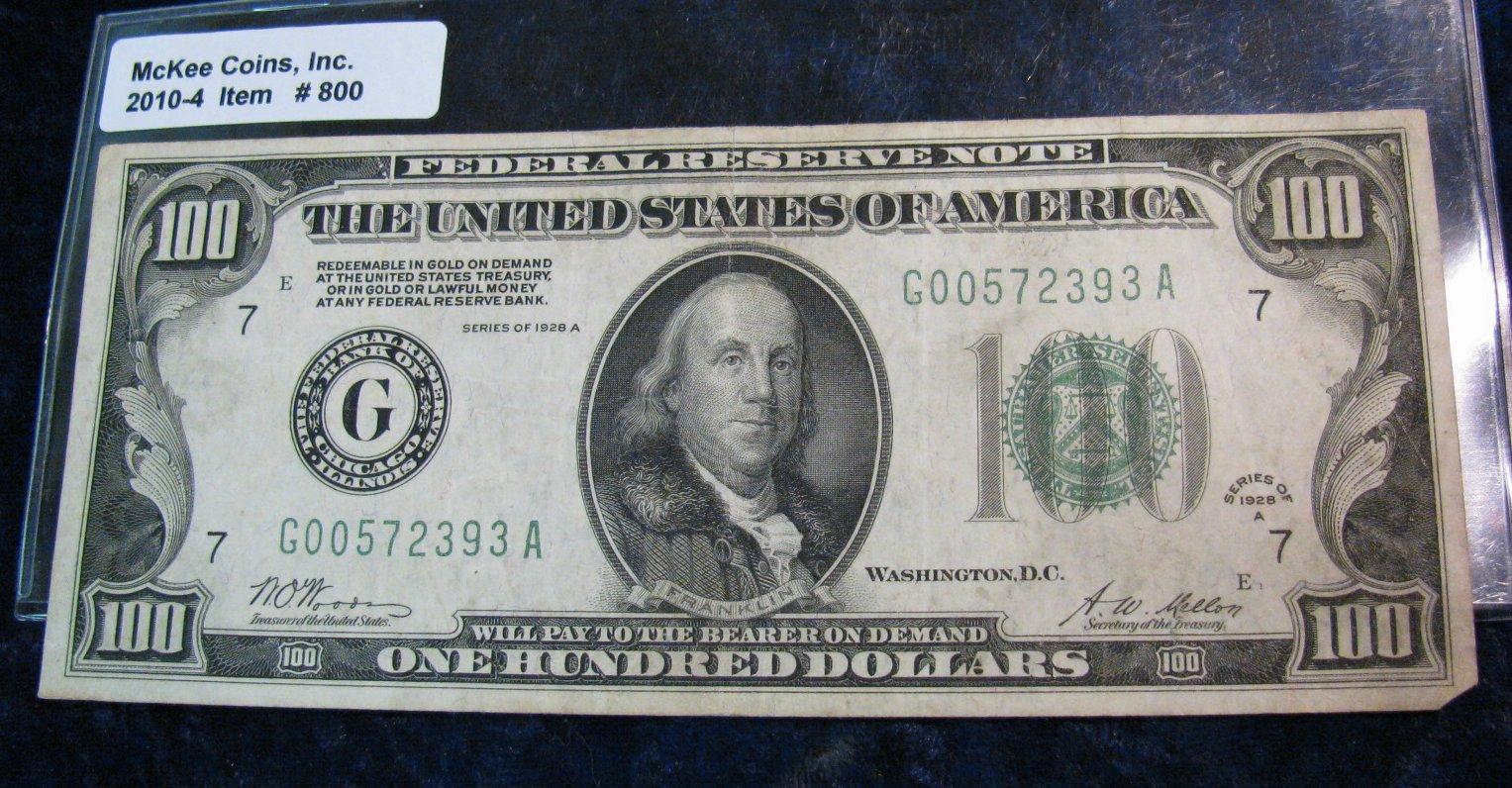 800. Series 1928A $100 Federal Reserve Note. "Redeemable in Gold on Demand..." VF.