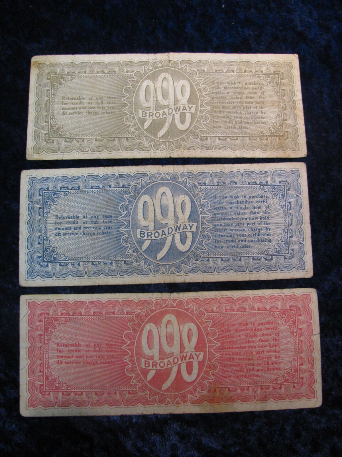 801. 3-1930's Sattler Script .50c, $1. & $5. Buffalo New York.
