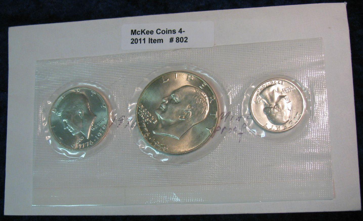 802. 1976S 3-Piece Uncirculated Silver Set not original envelope.