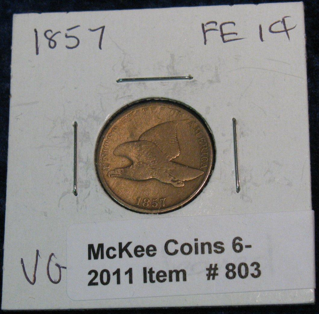 803. 1857 Flying Eagle Cent. VG.