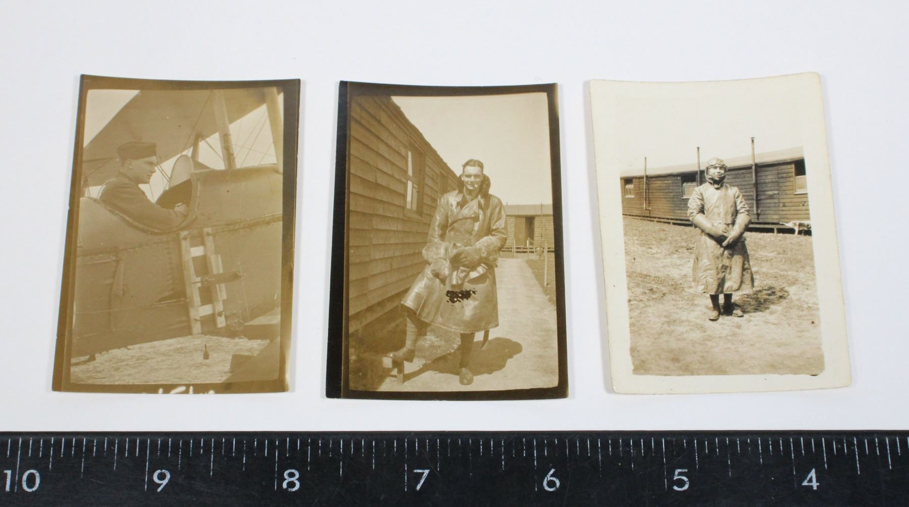 TWO RFC ROYAL FLYING CORPS AIRMEN IN UNIFORM COATS, ONE IN PLANE - POSSIBLY EARLY AMERICAN AIR FORCE- SMALL SIZE WORLD WAR ONE WW1 BLACK AND WHITE PHOTOGRAPH LOT