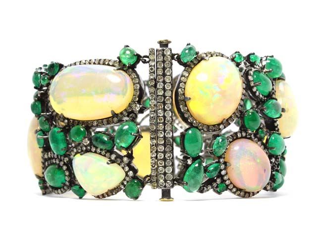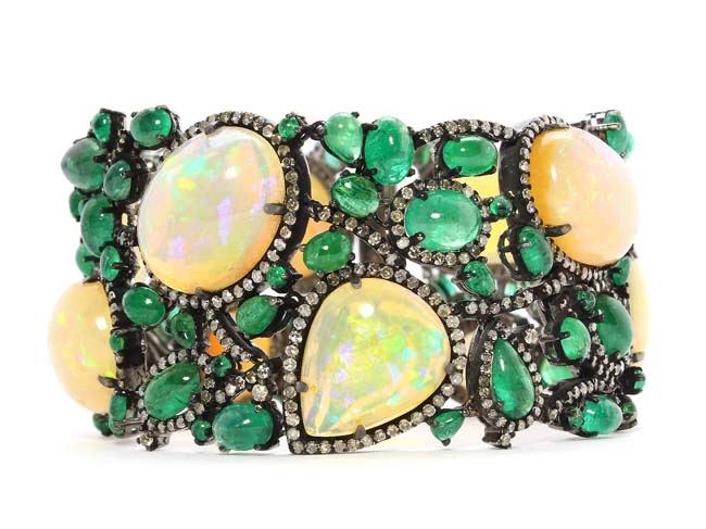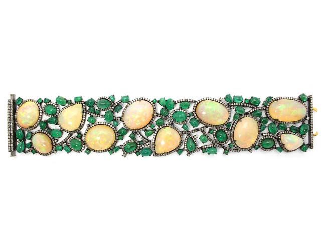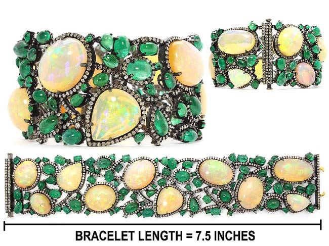 81.29 TCW OPAL, EMERALD &DIAMOND BRACELET 18KGOLD & SILVER