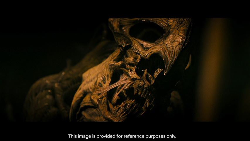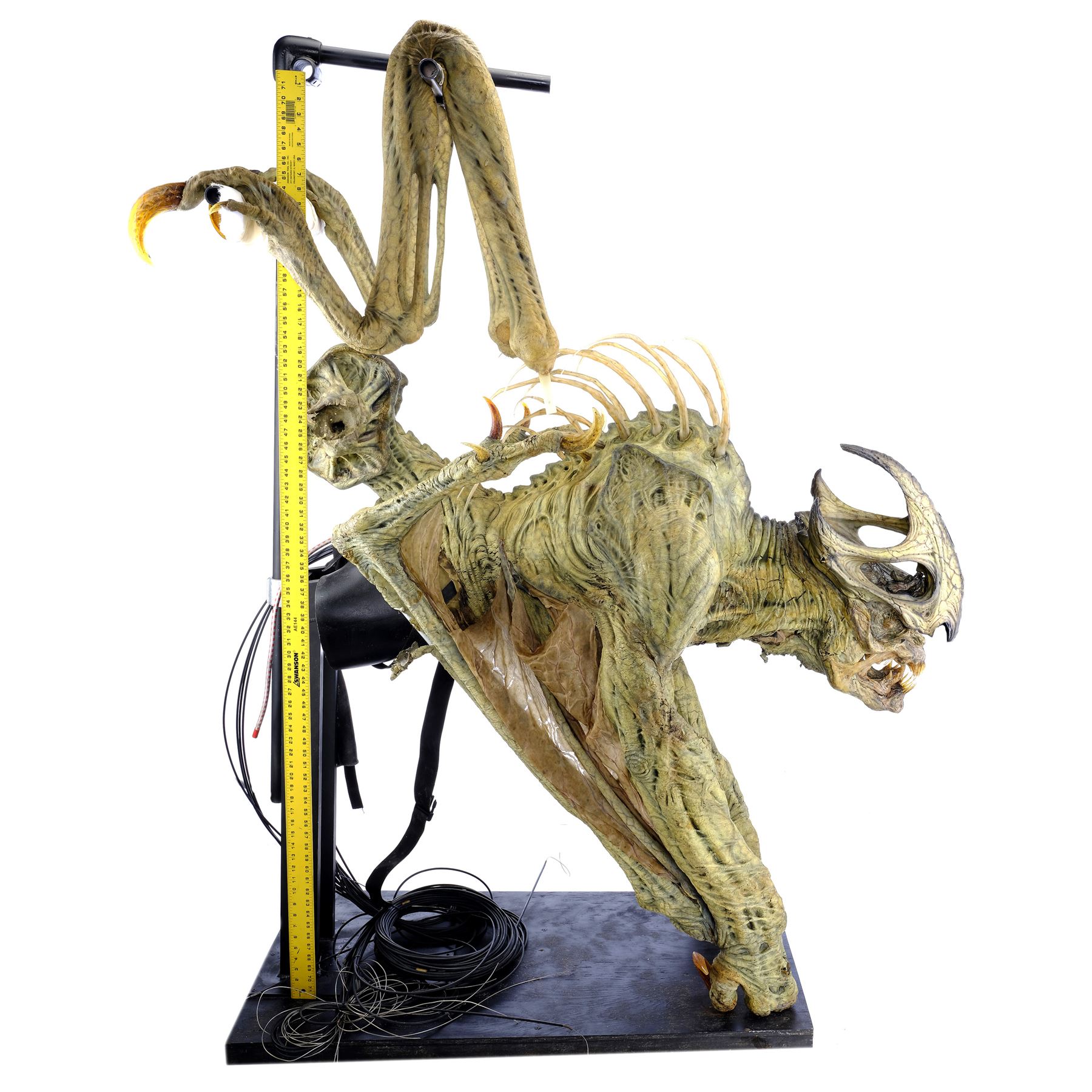 This creature underwent sympathetic restoration and stabilization following production. It exhibits holes in the face and body and torn rubber from age and production. Dimensions: 56" x 33" x 74" (142.25 cm x 84 cm x 188 cm)