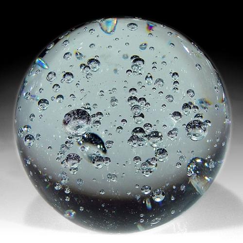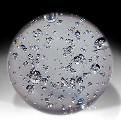 Miscellaneous large crystal bubble paperweight, with multiple scattered bubbles of various sizes. Diameter 3 5/8". NO RESERVE