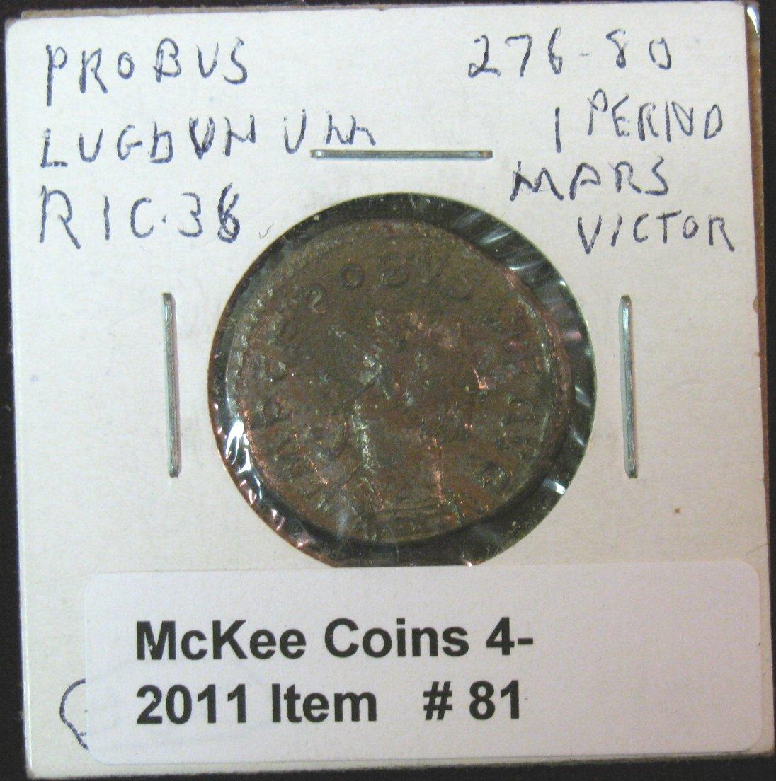 81. Probus 276-80 A.D. Antoninianus. RIC 38 Mars Victor reverse. Some silvering remains.