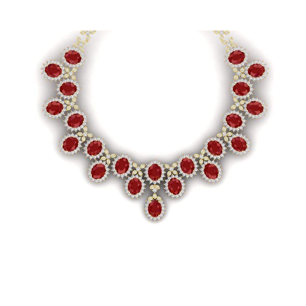 81 ctw Designer Ruby & VS Diamond Necklace 18K Yellow Gold