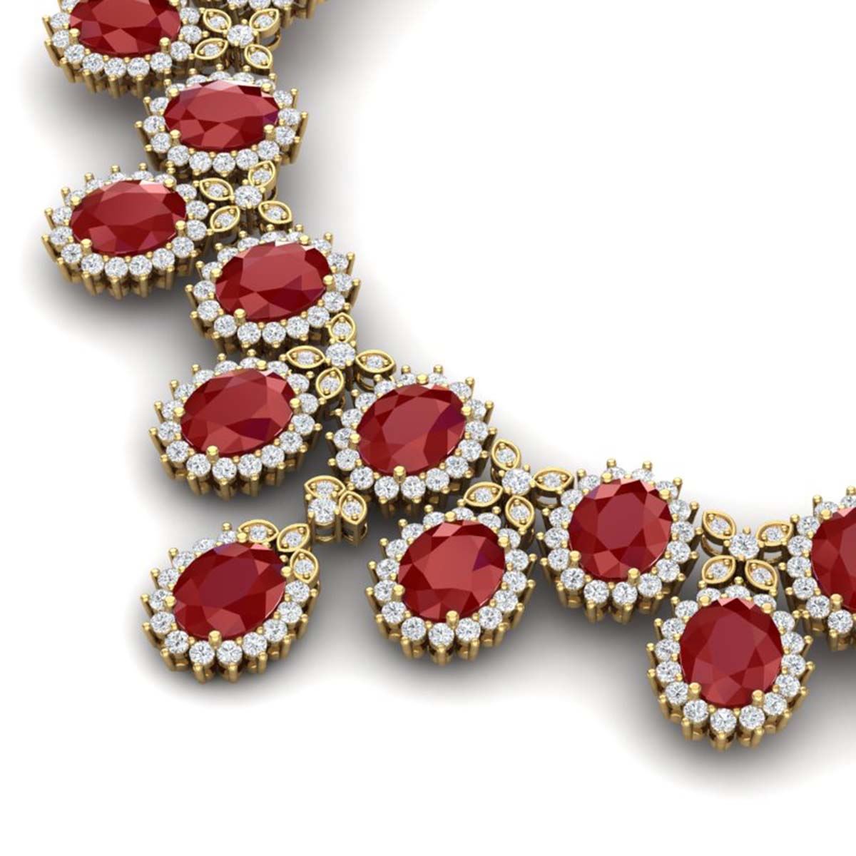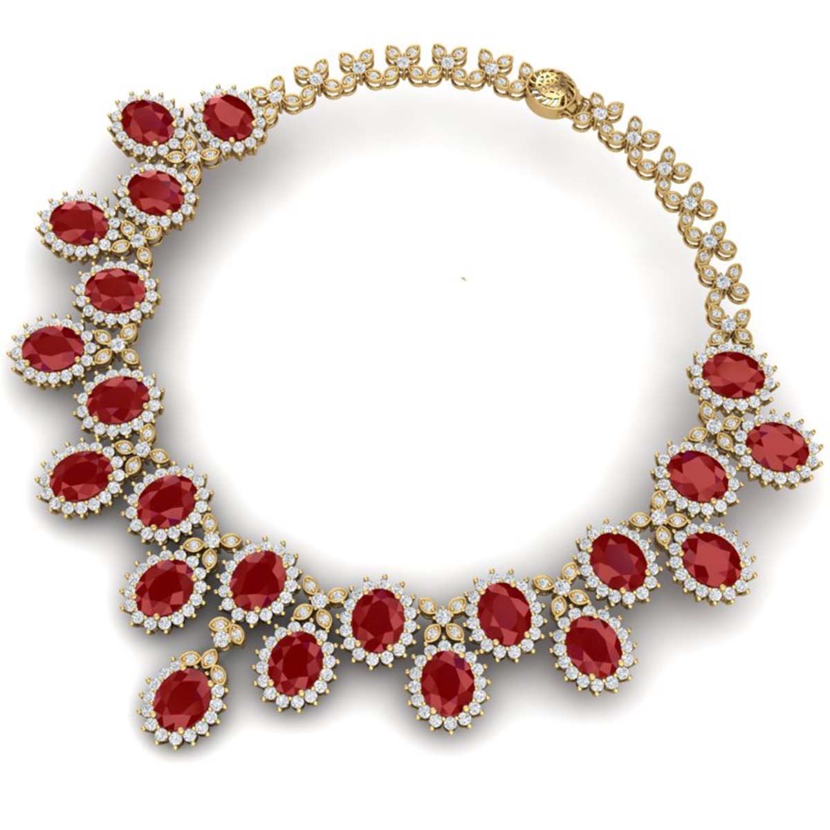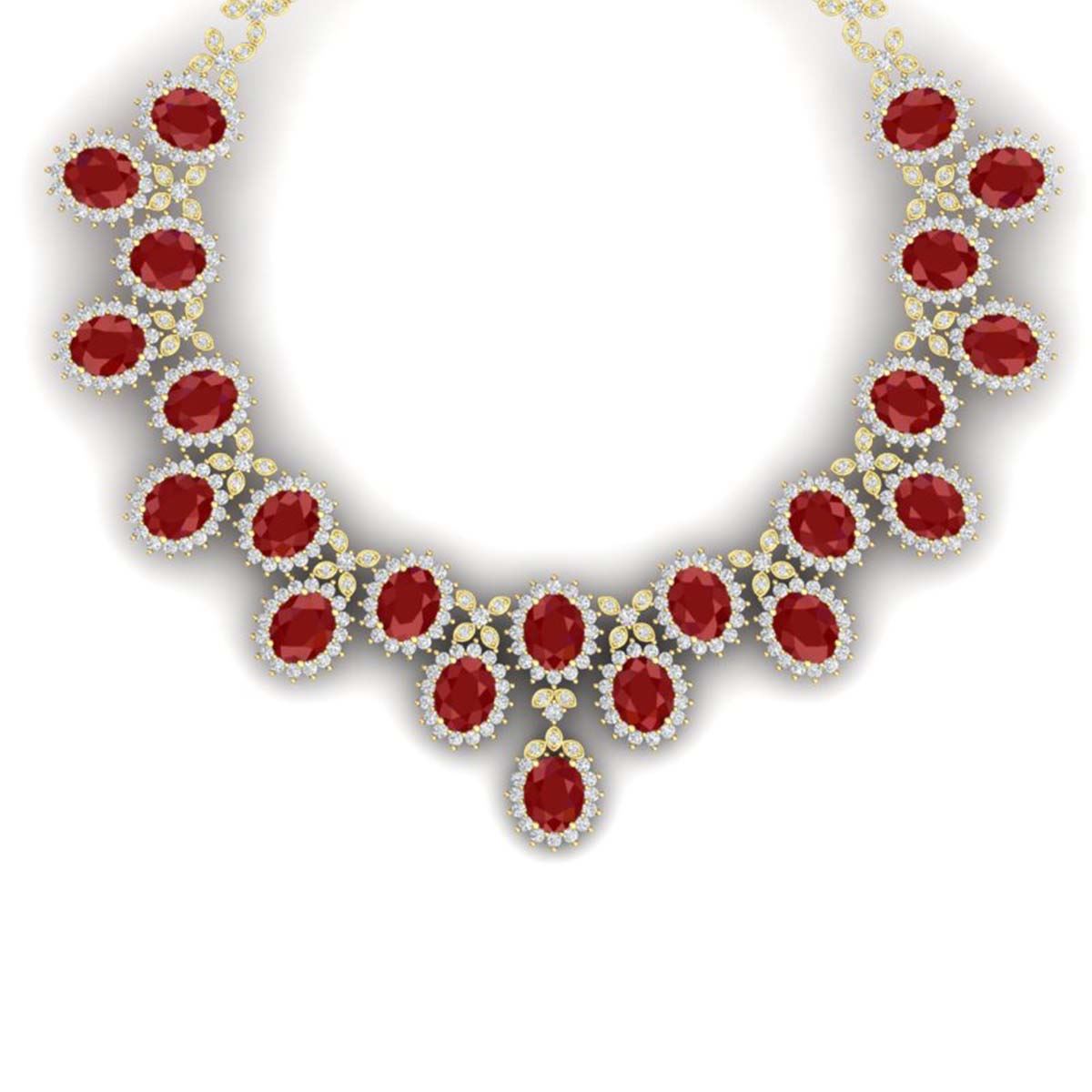 81 ctw Ruby & VS Diamond Necklace 18K Yellow Gold