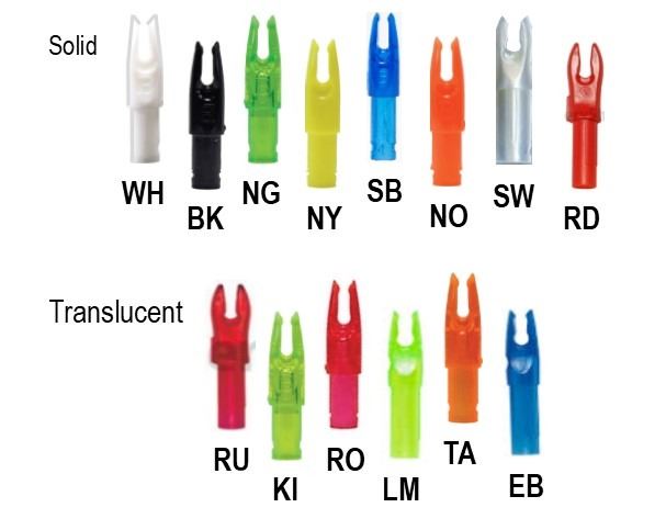 81 x Bohning Blazer Double Lock Nocks .244 - 12 pk, 4-Ruby, 5-White, 6-Kiwi, 6-Rose, 6-Lime, 6-Black, 6-Neon Green, 6-Neon Yellow, 6-Tangerine, 6-Satin Blue, 6-Neon Orange, 6-Electric Blue, 6-Satin White, 6-Red
