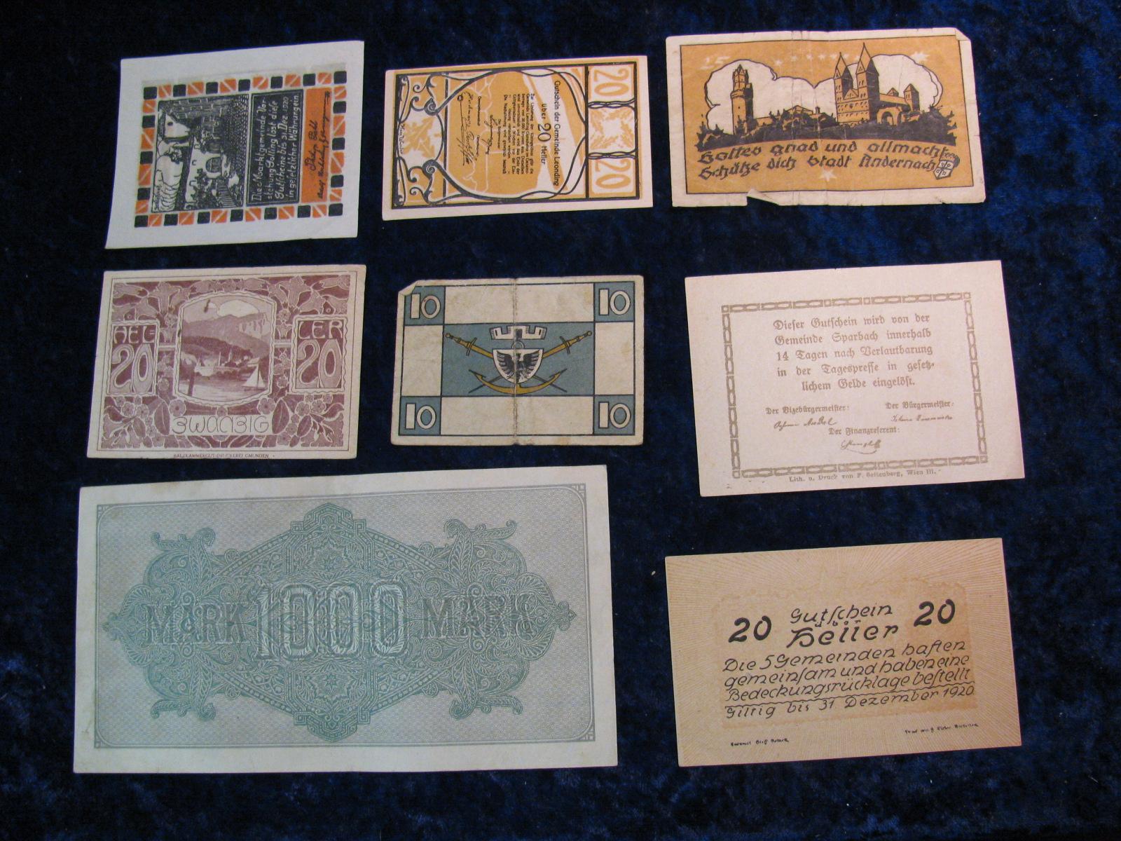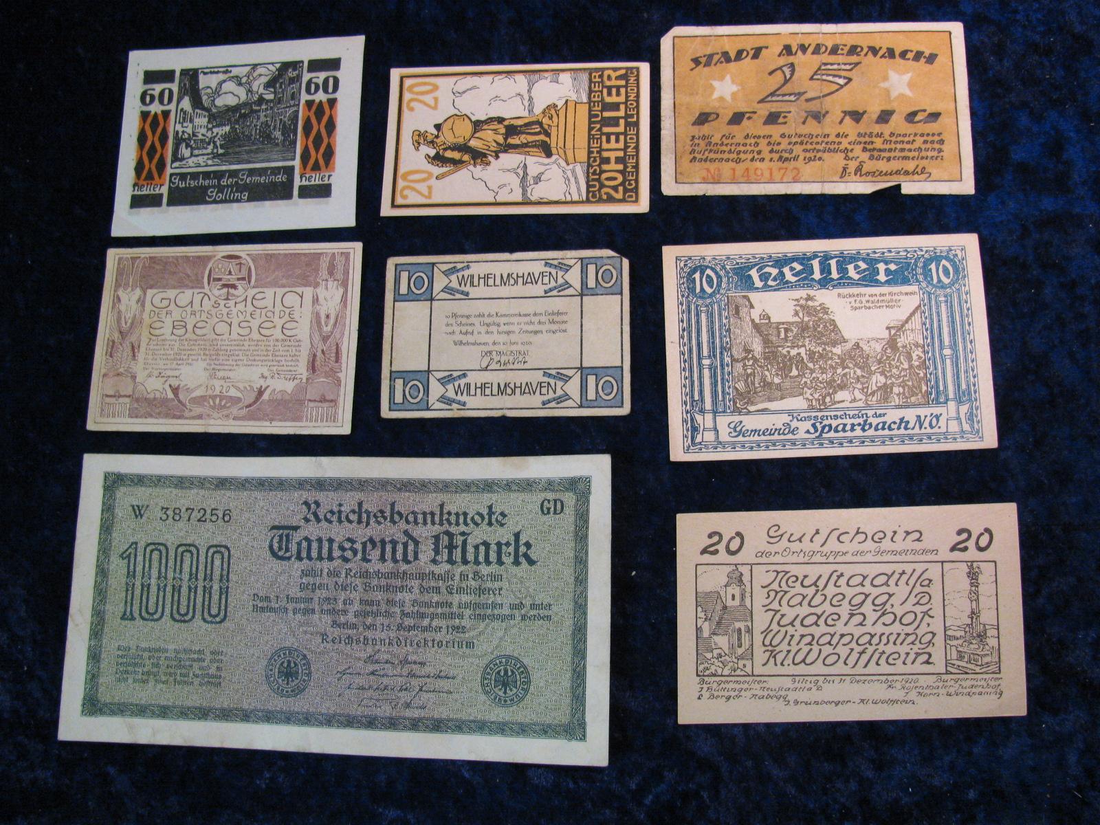 811. 1923 Germany 1000- Mark & (7) German Notgeld Notes.