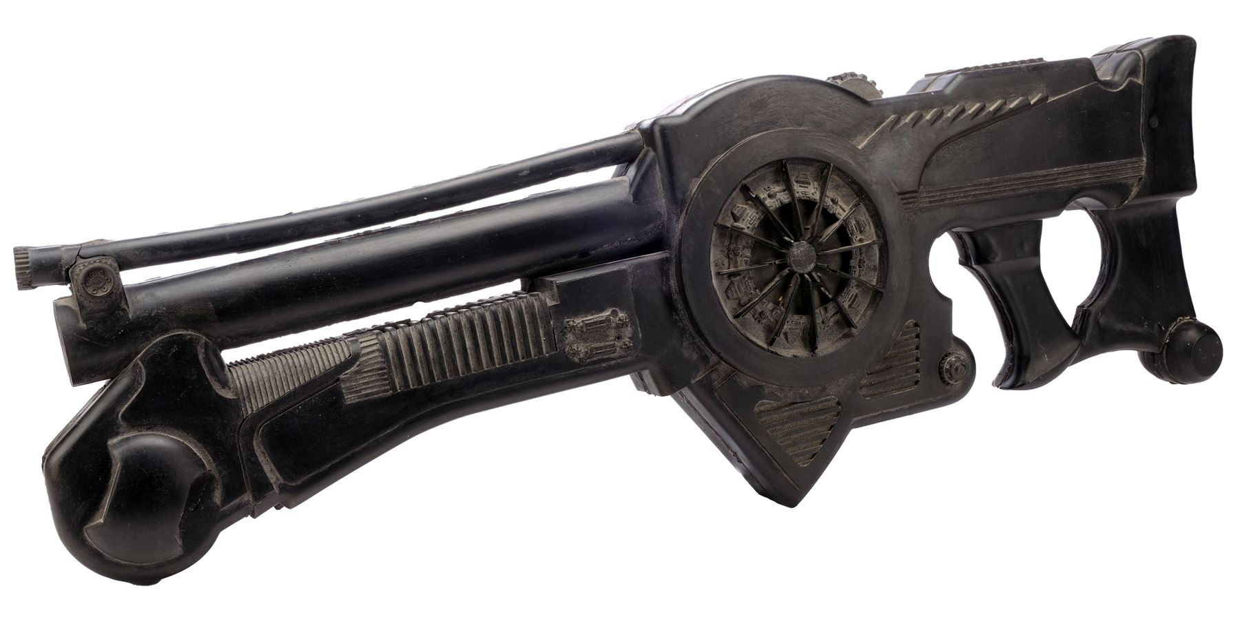 THE FIFTH ELEMENT (1997) - Unfinished Stunt Mangalore Rifle - An unfinished stunt Mangalore rifle from Luc Besson's The Fifth Element. Hired by Zorg (Gary Oldman), alien Mangalores wielded rifles throughout the film as they pursued Leeloo (Milla Jovovich) and Korben Dallas (Bruce Willis) in search of the Mondoshawan elemental stones.