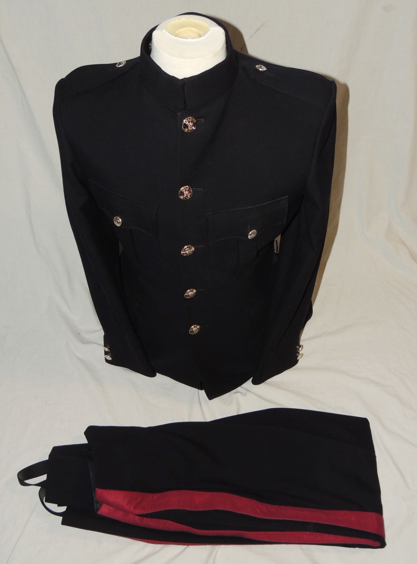 ENGLISH & SCOTCH TAILOR INCLUDES 1976 DATED STRIPED PANTS POLICE FORCE BUTTONS QUEEN ELIZABETH II 20TH CENTURY CANADA LAW ENFORCEMENT CANADIAN