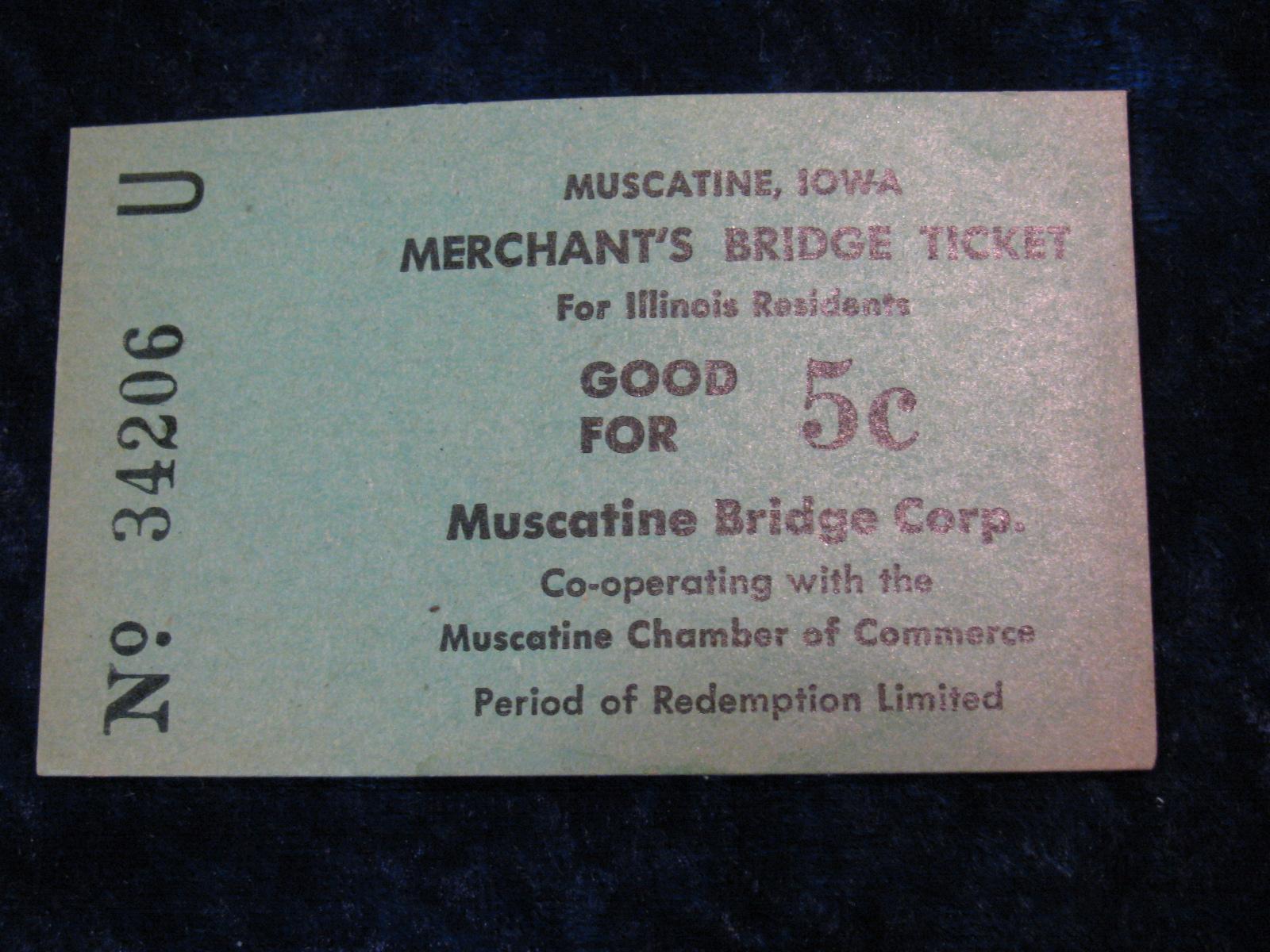 813. Muscatine, Iowa Merchant's Bridge Ticket for 5c.