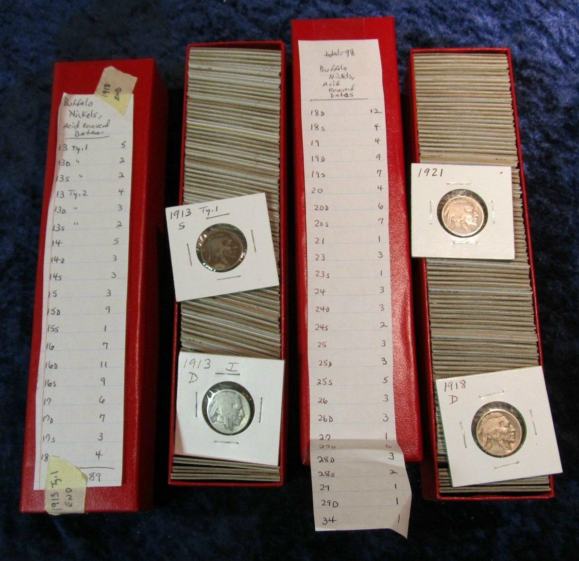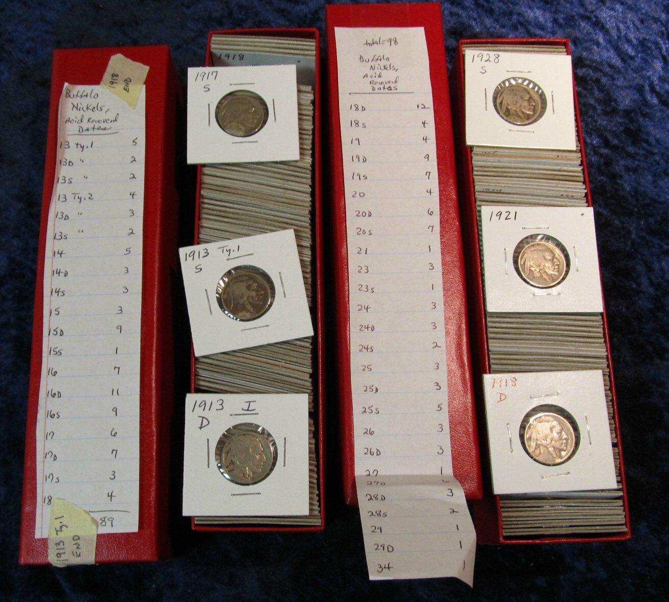 814. (187) Acid Recovered Buffalo Nickels. Inc.1913P, D, S, T-1, 13P, D. S, T-2, 14P, D S, 15P, D, S, 16P, D, S, through 1934. Multiples of Each
