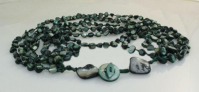 815.00CTW GREY GREEN 7 ROW MOTHER OF PEARL NECKLACE **|**|** 21 Inches Greyish Green Dyed Color Beads Mother of Pearl Necklace with MOP Circle Clasp ; MSRP: $100