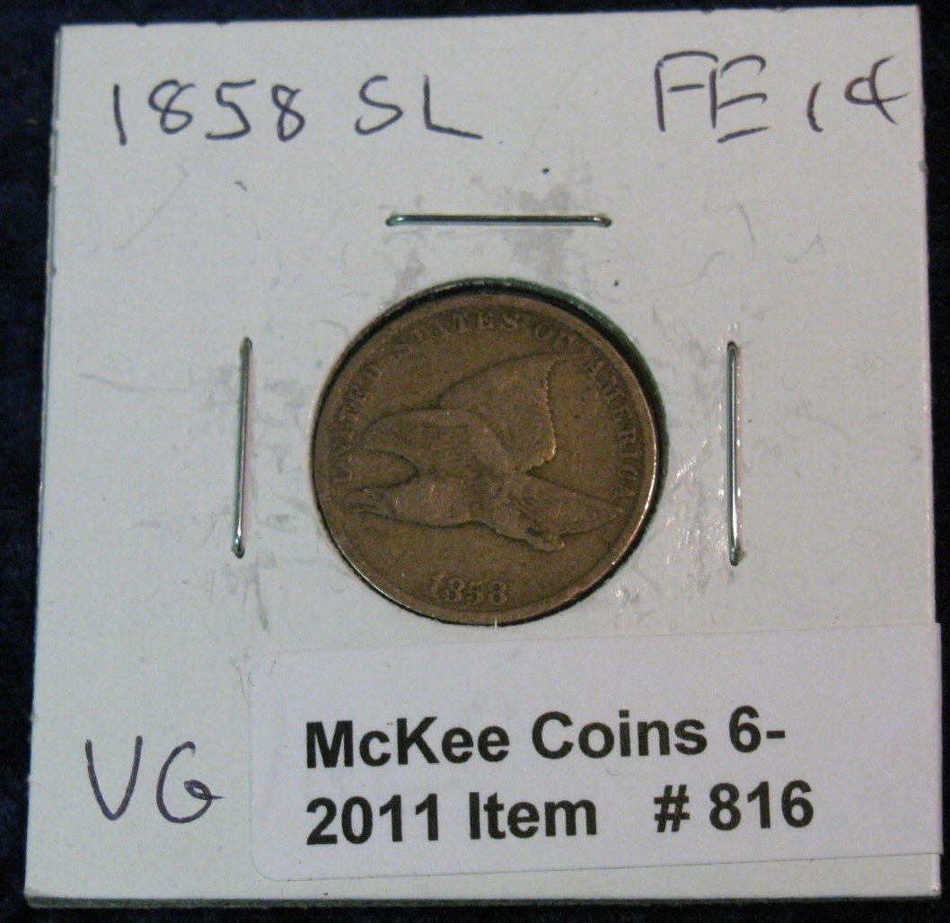 816. 1858 SL Flying Eagle Cent. VG-Obv & AG-Rev.