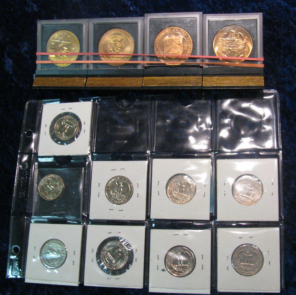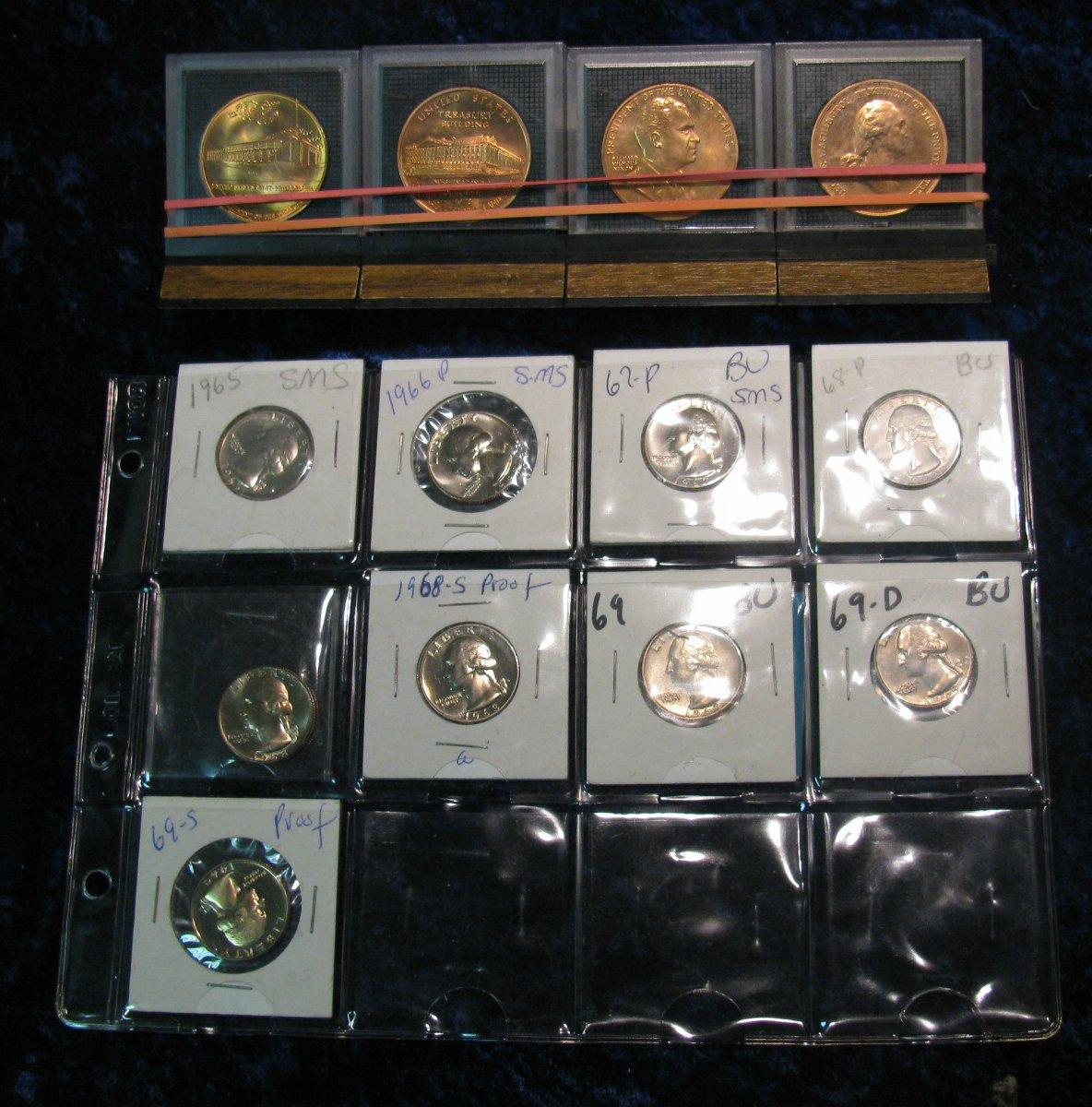 816. (9) 1965-69 BU & Proof Quarters, & (4) Mint Medals In Stand Up Case BU.
